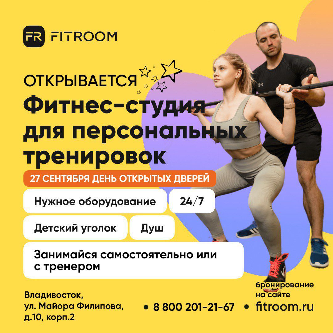 У нас радостная новость! Уже в эту субботу 27 сентября откроет свои двери новая студия FITROOM во Владивостоке!